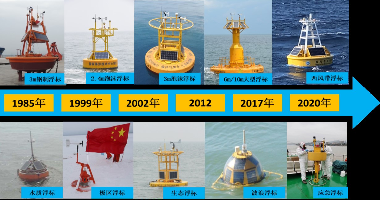 經過多年的科研攻關和不懈努力,現已研制多種尺寸規格的浮標,包括直徑10 m6 m3 m2.4 m2 m等多種型號。在功能上有通用型的水文氣象觀測浮標,專用型的海洋生態水質監測浮標、波浪浮標和應急核輻射監測浮標等。已在國內海洋環境觀測和海洋科學研究中發揮了巨大作用。