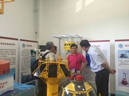 檢查組專家在中心副主任彭偉陪同下參觀了中心科技成果展示室和海洋環境監測設備動力環境實驗室。