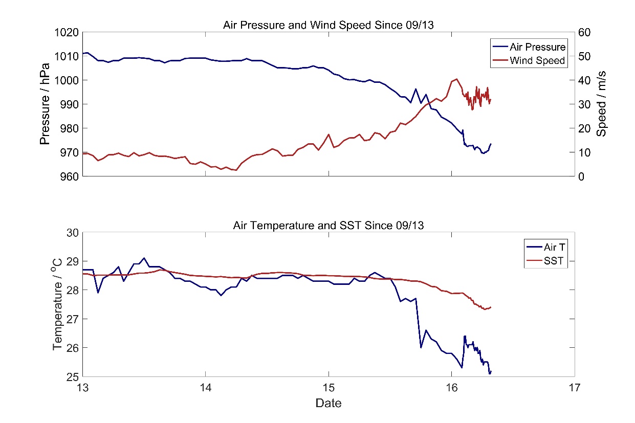 “山竹”期間氣壓、風速、海表面溫度和氣溫呈現同樣的變化趨勢