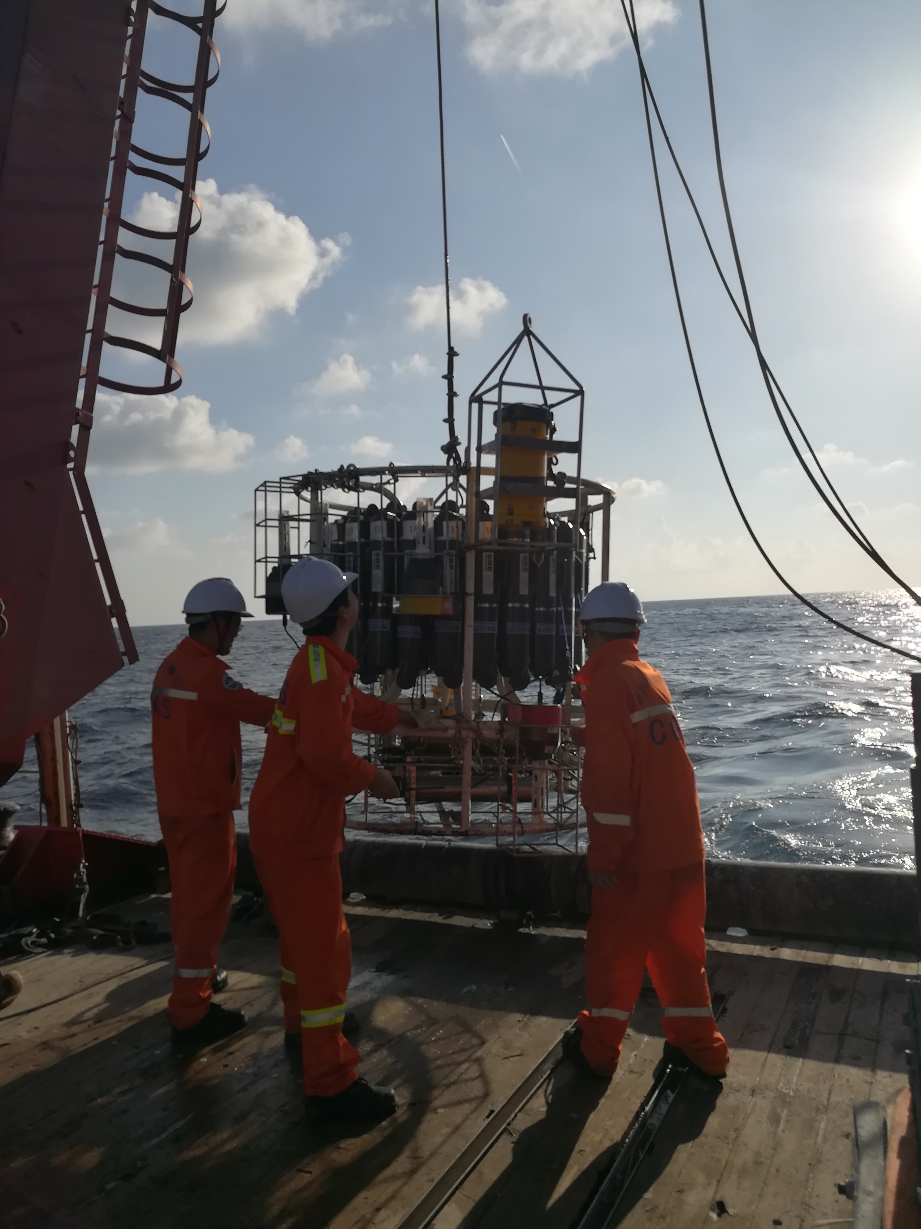 海試搭載船只為“海洋四號”,該船是廣州海洋地質(zhì)調(diào)查局屬下的一艘綜合科學(xué)調(diào)查船,噸位3300噸,為本次海試配備了獨立儀器房、絞車操作間及水文實驗室。按照科技部的要求,本次海試成立了第三方見證組,負責(zé)監(jiān)督和見證海上試驗過程, 保證海試數(shù)據(jù)和結(jié)果真實可靠,同時對海試結(jié)果進行評價,給出評價意見。見證組由廣州地調(diào)局和國家海洋標準計量中心成員組成,由廣州地調(diào)局牟澤霖高工擔(dān)任組長和本航次首席科學(xué)家。