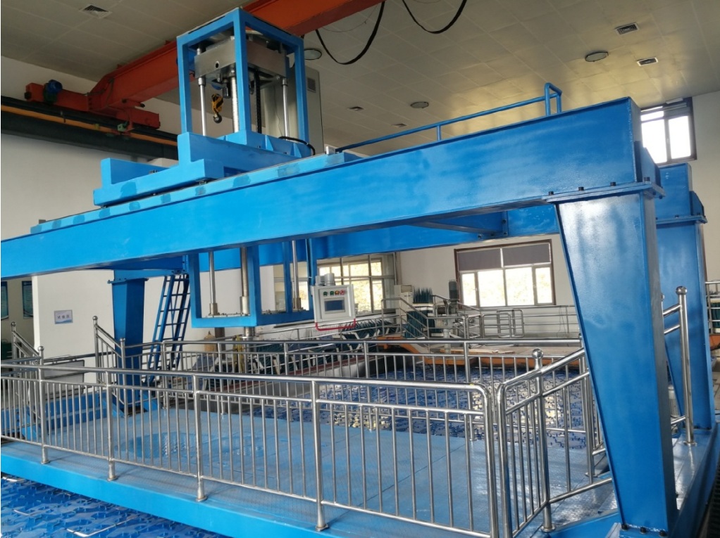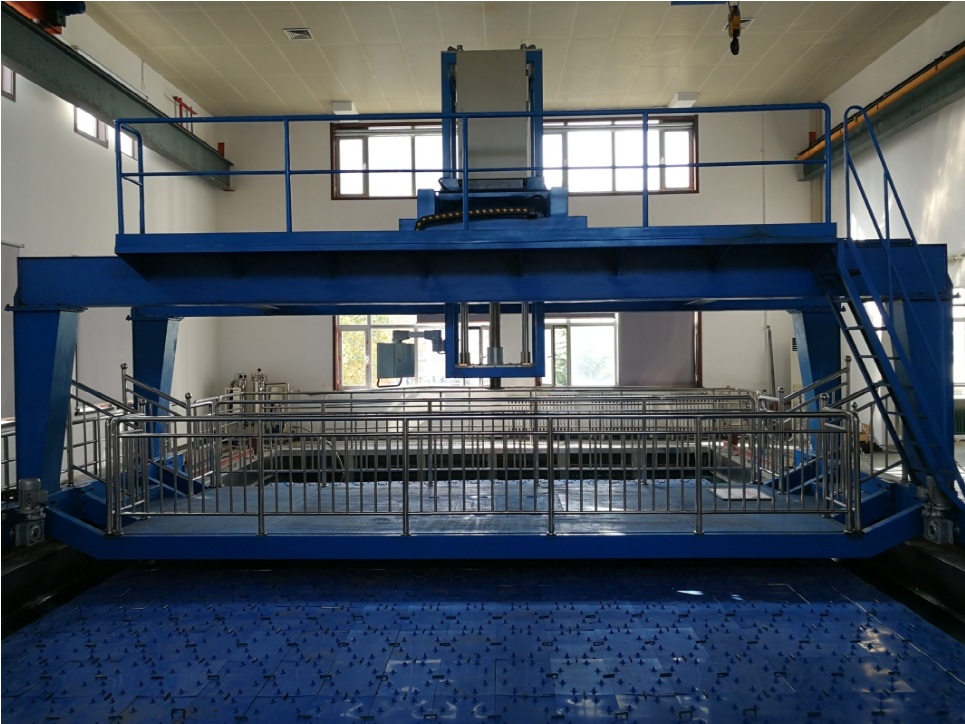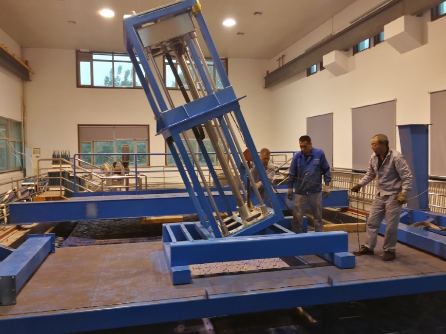 移動實驗平臺按照設(shè)計方案制造完成后,實驗室人員于10月13日到制造現(xiàn)場完成基本結(jié)構(gòu)和功能的預驗收。11月3日至5日,開展了移動實驗平臺結(jié)構(gòu)件的進場、安裝等工作。在此過程中,遇到了諸如實驗室空間有限等問題,通過實驗室人員和安裝人員的共同努力,在未破壞實驗室內(nèi)原有設(shè)備的前提下,成功完成了移動實驗平臺的組裝工作。11月6日至7日,開展了移動實驗平臺的調(diào)試工作,調(diào)試完成后的移動實驗平臺縱向運動范圍15m,深度方向運動范圍不小于2.3m,可接延長桿至6m,小車橫向運動范圍2.3m,回轉(zhuǎn)角度范圍±360º,回轉(zhuǎn)控制誤差:不大于±0.1°,水聲測試系統(tǒng)計算機通過RS232通訊接口,采用無線數(shù)傳模塊與現(xiàn)場控制器通訊。經(jīng)調(diào)試驗證,移動實驗平臺全部功能均滿足設(shè)計方案的指標要求,順利通過驗收。