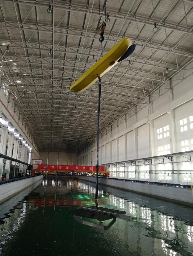 中心深海室波浪能滑翔器課題組在原有863項目海試樣機基礎上,針對水下牽引機的推進性能進行優化設計,完成新型樣機的組裝調試。日前,在中心動力環境實驗室波浪水池內完成了規則波浪驅動下波浪能滑翔器的平臺航行性能試驗。