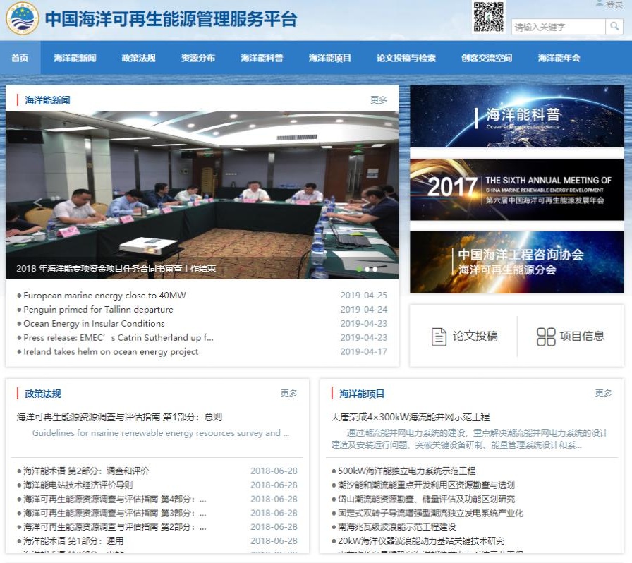 日前中國海洋可再生能管理服務平臺正式上線,進入試運行階段該平臺是2016年海洋能資金項目“海洋能資源數據服務系統建設”的一項重要成果