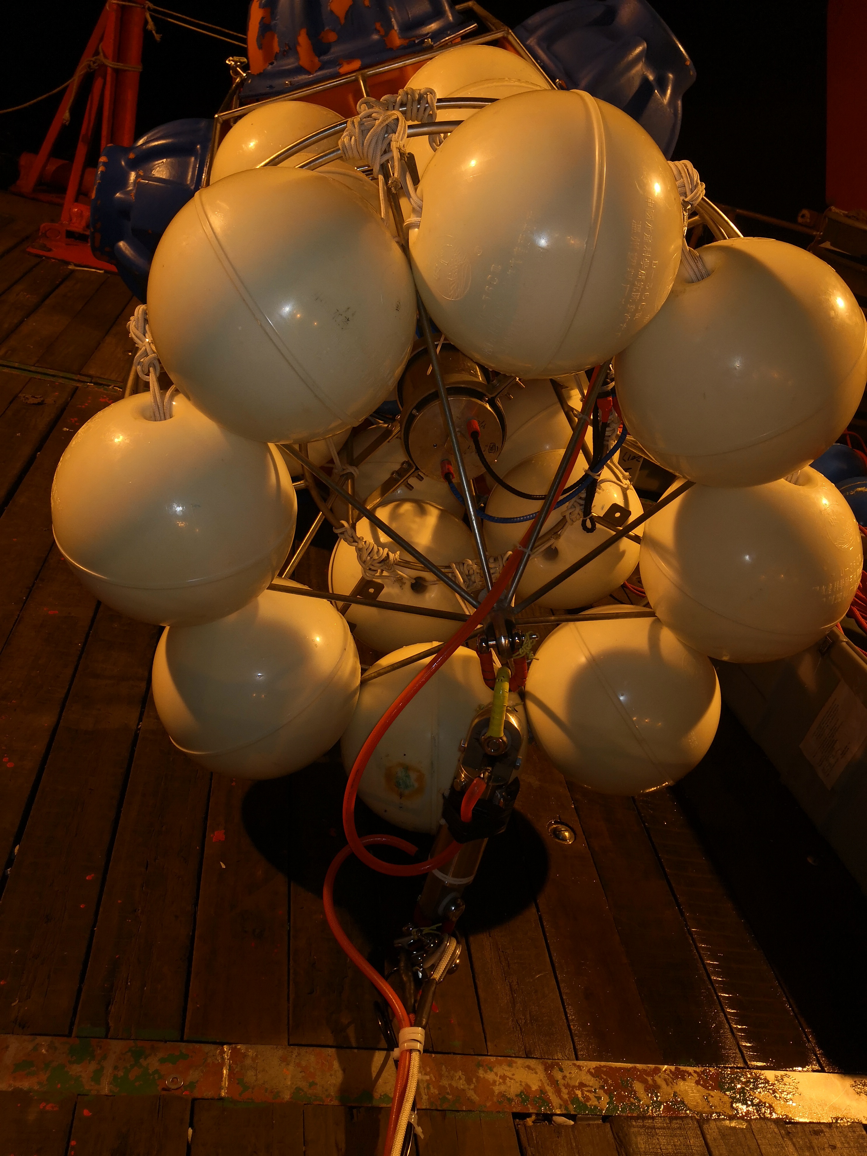 業(yè)務工作2019年12月20日,在西太平洋海域,伴隨著白色浮球組成的潛標主浮體出水,到最后一臺儀器收艙,標志著中國科學院海洋研究所準實時傳輸深海剖面錨系觀測潛標順利回收,同時由我中心傳感器室自主研發(fā)的感應耦合傳輸溫鹽深鏈為期1年的中期海試工作圓滿完成。