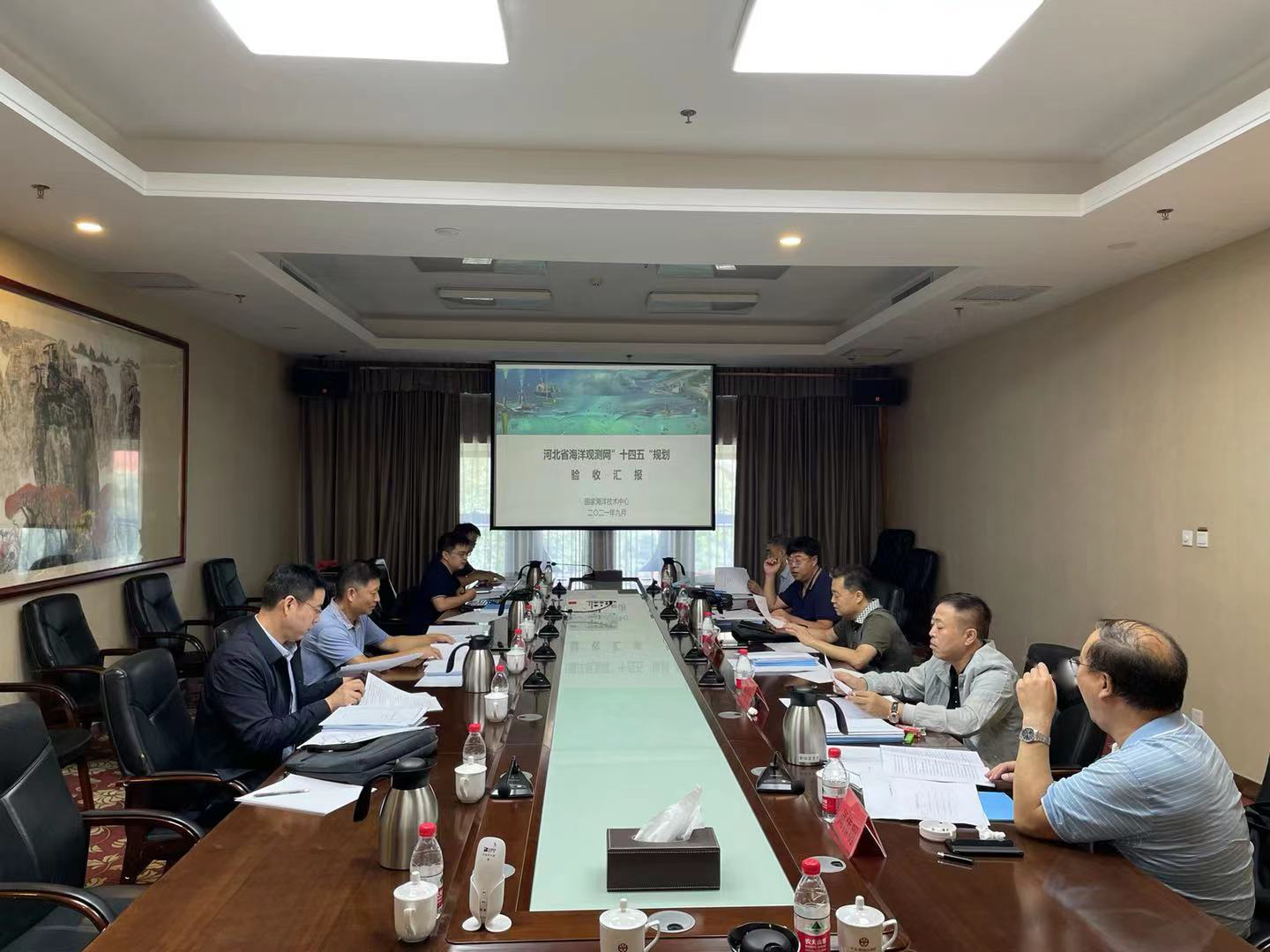 2021年9月7日,由戰規室和資源保護研究院共同承擔的《河北省海洋觀測網“十四五”規劃》(以下簡稱《規劃》)編制項目驗收會在河北省石家莊市召開。會議邀請了河北省自然資源廳、交通運輸部天津水運工程科學研究院、青島海海洋工程勘察研究院、河北師范大學、河北省地質勘察院的有關領導和專家。中心項目組編制有關人員參加了會議。會議由河北省自然資源廳海洋預警監測處主持,總工程師楊黎軍任驗收專家組組長。