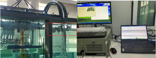2 非接觸式六自由度測量儀(左)與造波、造流及數據采集系統(右)