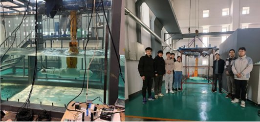 本次試驗工作中,通過實驗室配備的高精度Vectrino三維流速測量儀、無線波高儀來實時采集并保存流速及波高數據。此外還使用了光學非接觸式六自由度測量儀,在對裝置姿態不影響的情況下準確測量了水輪機的六自由度運動數據。該試驗工作的順利完成,不僅為潮流能水輪機的海上實際電站的工程設計提供依據,也展現了中心對海洋能發電裝置科技創新與成果轉化的支撐服務能力。(試驗場中心 王花梅)