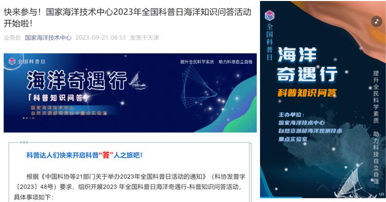 為了加強公眾對海洋技術(shù)進展的認(rèn)識,9月21日,中心通過中心公眾號開展科普知識問答活動,引發(fā)了廣泛的關(guān)注。根據(jù)統(tǒng)計,瀏覽量1000余次,參與人數(shù)150余人次,取得了良好的科普宣傳效果。