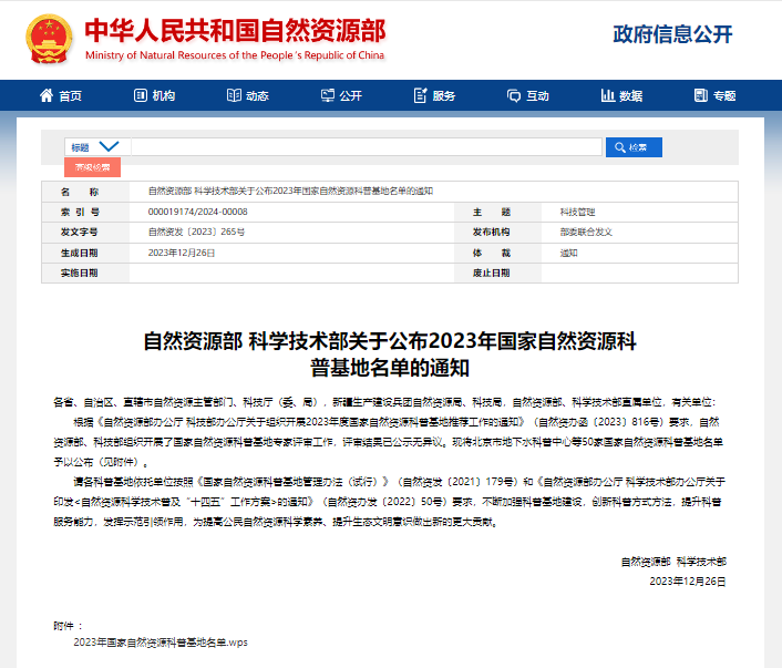 喜報!中心被授予“國家自然資源科普基地”稱號